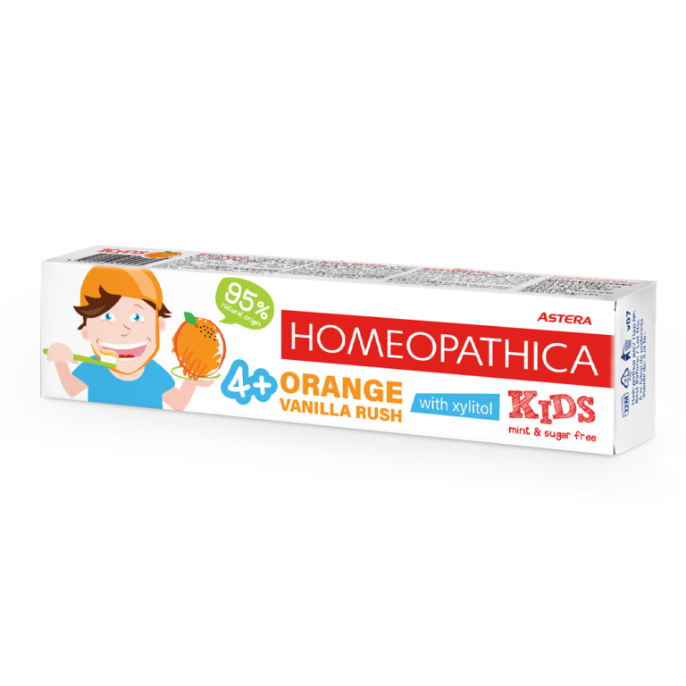 استيرا معجون أسنان هوموباتيكا للأطفال بالبرتقال والفانيليا +4 سنوات – 50 مل