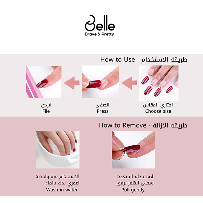 - يمكن استخدام أظافر بيل القابلة لإعادة الاستخدام للحصول على مانيكير فوري أنيق ومتوفر بألوان مختلفة للمناسبات الخاصة وتقديمه كهدية رائعة.