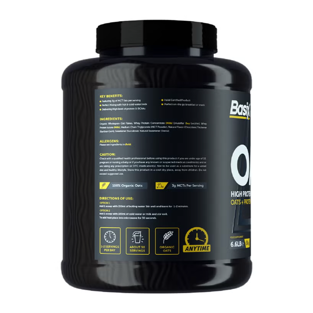 يحتوي على 100% من رقائق الشوفان الكاملة العضوية كمصدر وحيد للكربوهيدرات، مما يضمن توفير طاقة مستدامة.