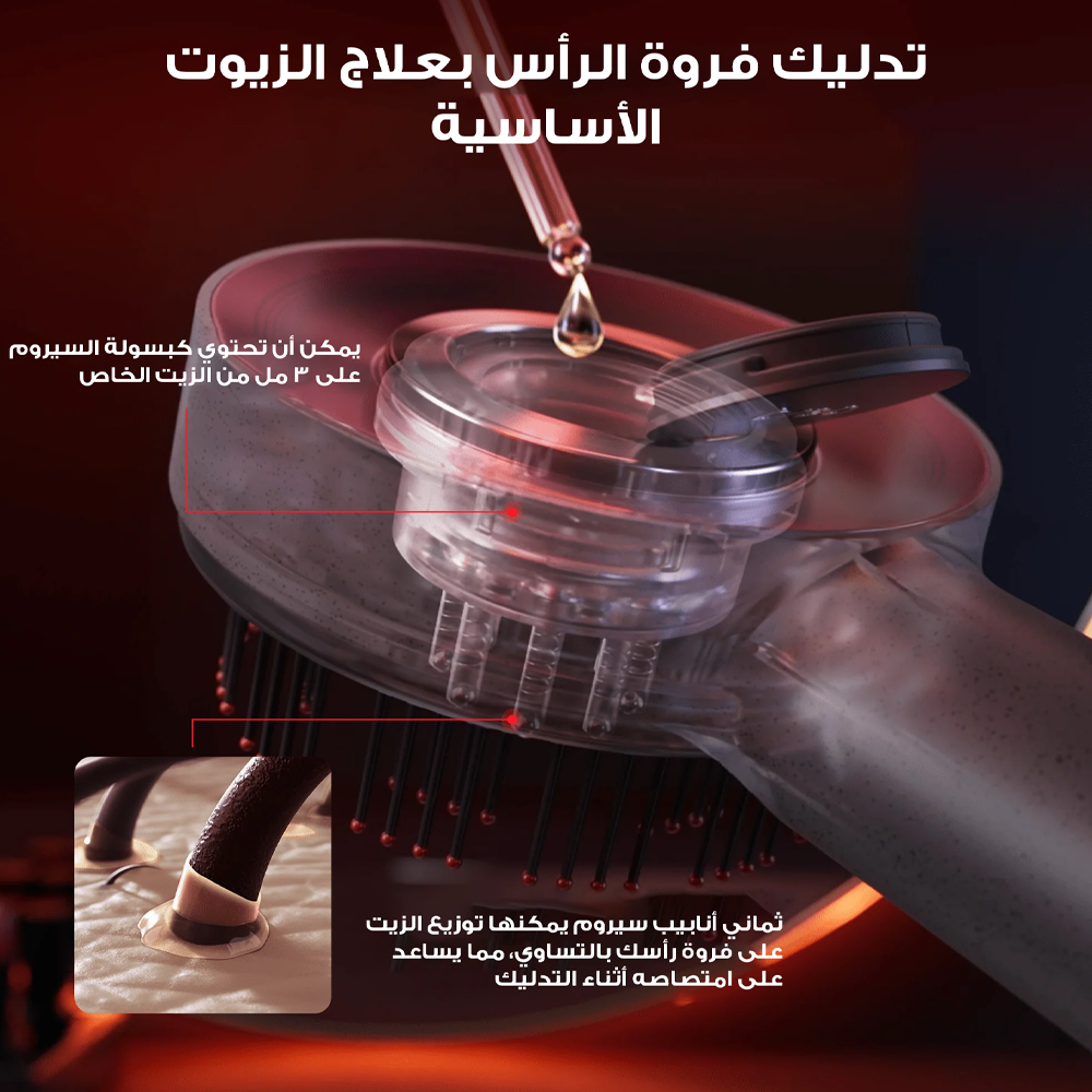 يقوم بتوزيع الزيوت المعالجة الخاصة بك بشكل متساوي على فروة الرأس، مما يعزز من فعالية العلاج ويغذي بصيلات الشعر بشكل أعمق.