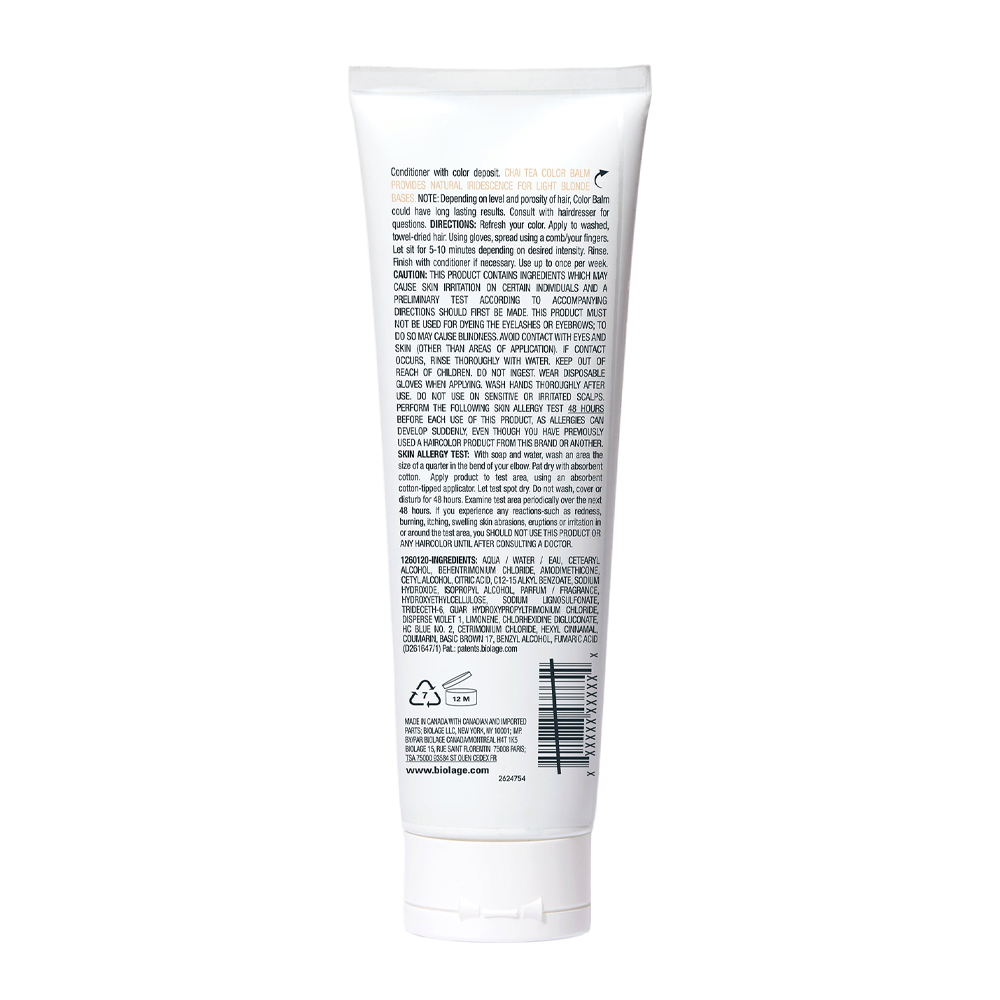 بلسم بايولاج كلر بالم لترسيب لون الشعر وتكثيفه وترطيبه في 5 دقائق.يوفر ظل شاي تي تعزيز اللون الطبيعي لأساس الشعرالأشقر الفاتح.  يستخدم لإنعاش أو توحيد لون الشعر أو تكثيفه.