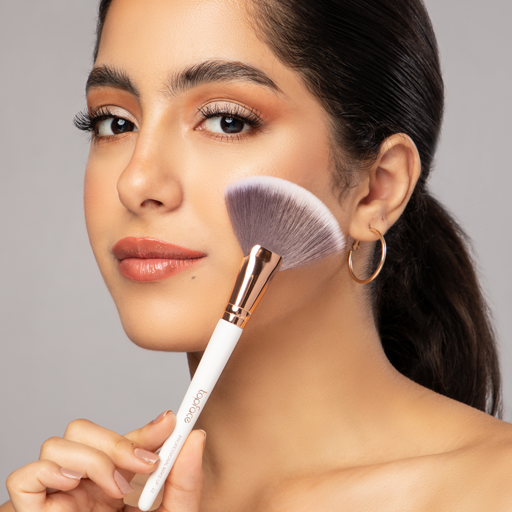 فرشاة مميزة من توب فيس مصممة برأس مروحة لتطبيق الإضاءة بشكل احترافي.تتميز بشعيرات ناعمة ولطيفة على الوجه عند وضع الإضاءة لتمنحك مكياج رائع وجذاب.مثالية لوضع الإضاءة على عظمة الخد و الأنف والجبهة والذقن لمظهر لامع وصحي.كما أنها سهلة الاستخدام والتنظيف، ولا تسبب أي تهيج أو حساسية للبشرة.