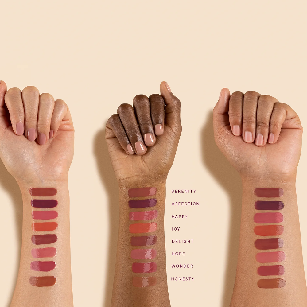 Honesty: الماء (أكوا/EAU)، ثنائي فينيل ثنائي الميثيكون، ثنائي إيزوستيريل مالات، BIS-DIGLYCERYL POLYACYLADIPATE-2، OCTYLDODECANOL، BIS-BEHENYL/ISOSTEARYL/PHYTOSTERYL DIMER DILINOLEYL DIMER DILIءNOLATE، بولي إيزوبوتين مهدرج ، الجلسرين، ديبروبيلين جلايكول، سيتيل PEG/PPG-10 /1 دايميثيكون، سوربيتان أيزوستيريت، بوليسوربات 60، بنتيلين جلايكول، فينوكسي إيثانول، هيدروكسي إيثيل أكريليت / صوديوم أكريلويل ثنائي ميثيل توريت كوبوليمر، مينثوكسي بروبانيديول، سيتيرث -20، سكوالان، عطر (عطر)، سيموندسيا تشينينسيس ( زيت بذور الجوجوبا، ستيفيوسيد، هيليانثوس أنوس (عباد الشمس) ) زيت البذور، إيثيل هكسيل جليسرين، بولي أكريلات الأمونيوم، هيدروكسيد الألومنيوم، بوتيلين جلايكول، مستخلص فاكهة جاردينيا فلوريدا، مستخلص زهرة نيلومبو نوسيفيرا، مستخلص جذر نيمفيا أودوراتا، بنتايريثريتيل تيترا دي تي بوتيل هيدروكسي. هيدروسينامات، بنزيل ساليسيلات، ليمونين، يوجينول، ثاني أكسيد التيتانيوم ( CI 77891)، أصفر 5 (CI 19140)، أحمر 33 (CI 17200)، أصفر 6 (CI 15985)، أحمر 28 (CI 45410)، أزرق 1 (CI 42090).