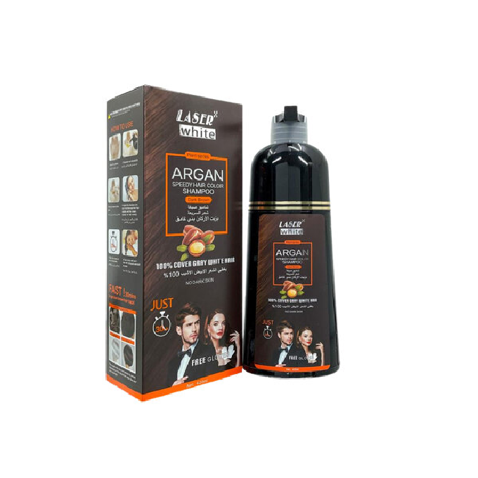 شامبو صبغة شعر بزيت الارجان من ليزر وايت – بني غامق- 420 مل