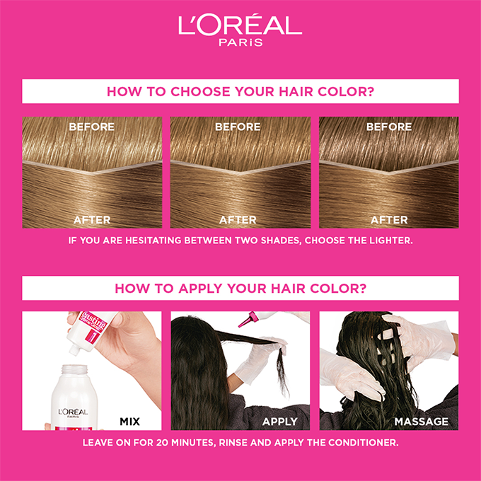 استمتعي بتغيير لون شعرك مع صبغة لوريال باريس.تمنح الشعر لون طبيعي و لمعة مميزة.تحتوي على بلسم مغذي غني بزيت جوز الهند لخصل لامعة وتغذية تامة.تركيبة بتغطية كاملة لإخفاء الشيب.خالية من الأمونيا.لون يدوم حتى 28 غسلة.تختلف نتيجة لون الشعر حسب لون شعرك الطبيعي.