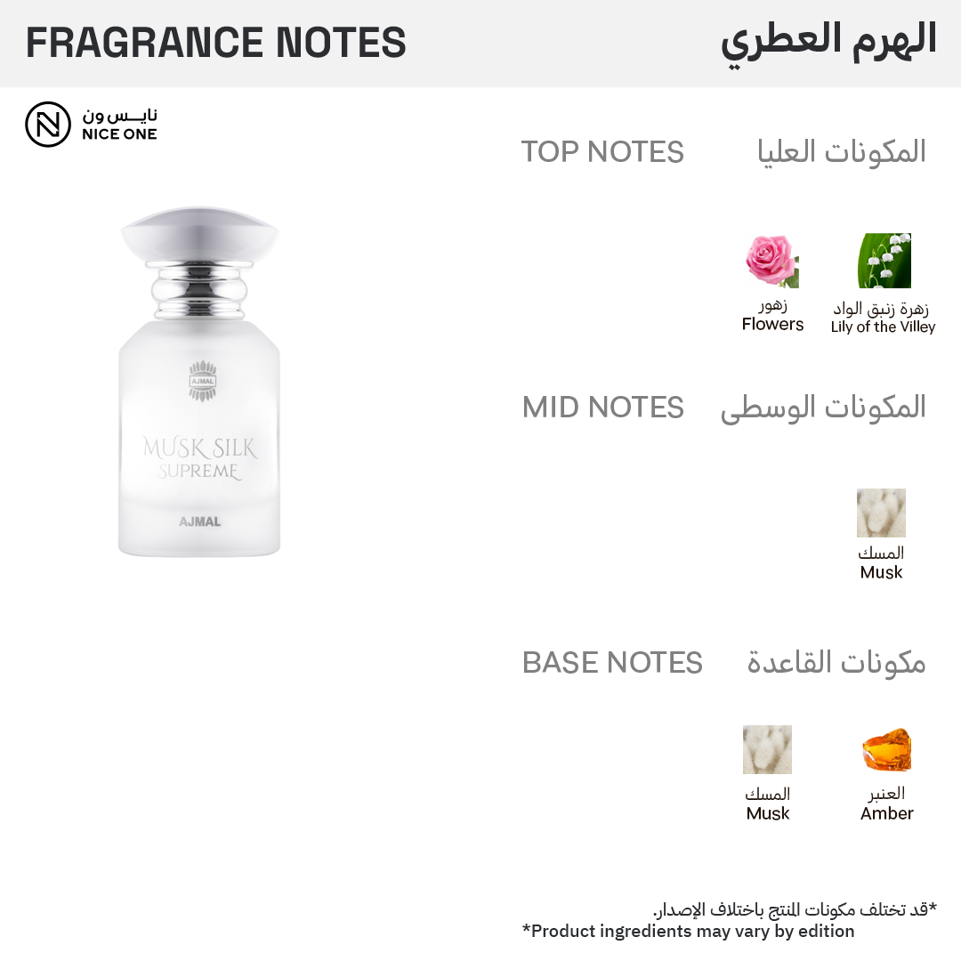 عطر أجمل مسك سيلك سوبريم هو عطر زهري مسكي فاخر يناسب الرجال والنساء.