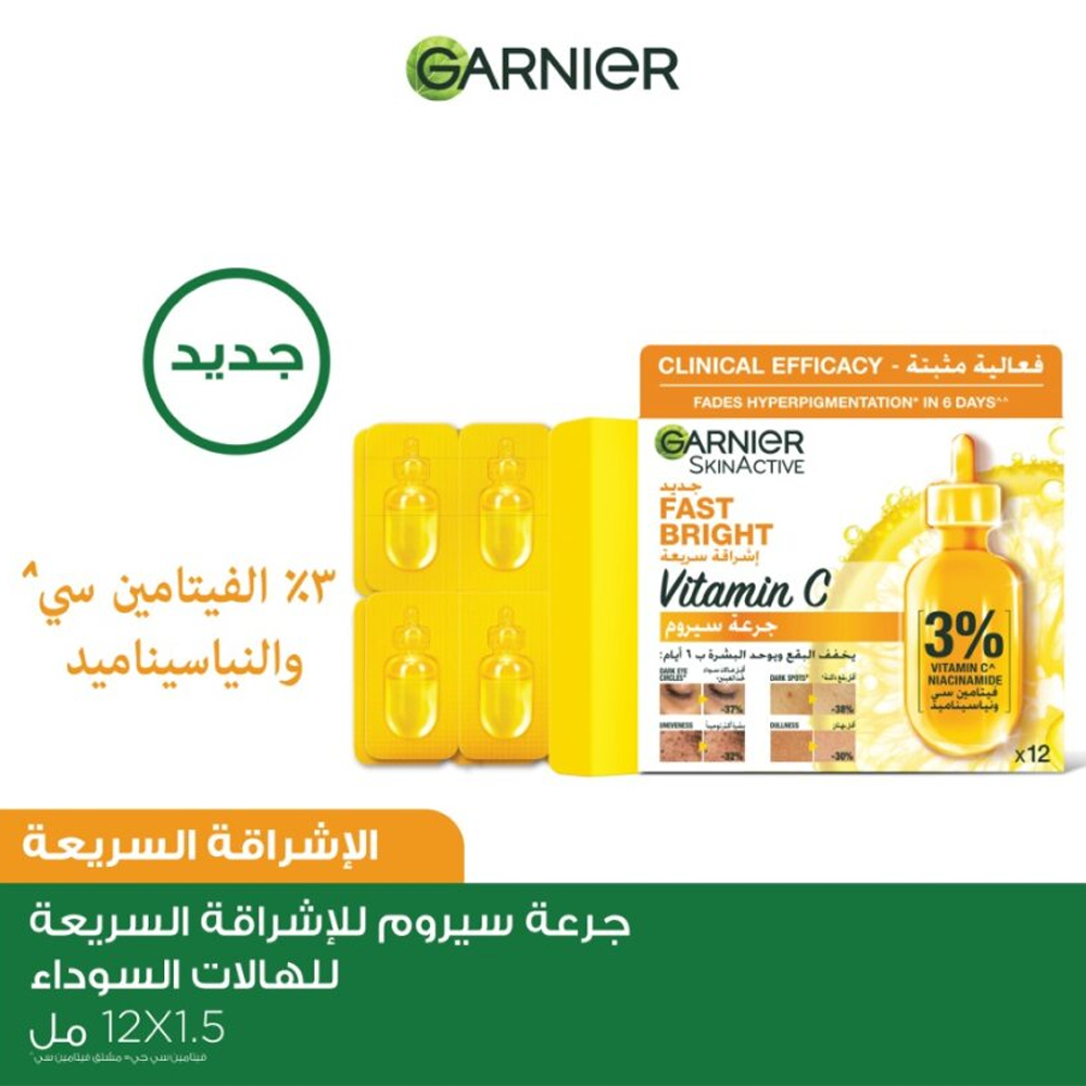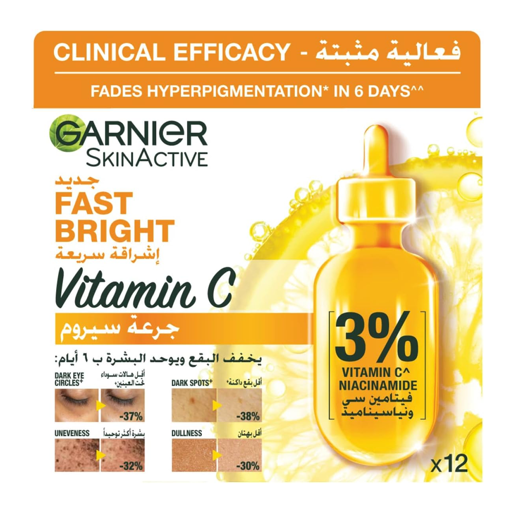 غارنييه سيروم سكين اكتيف للإشراقة السريعة مع %3 من الفيتامين سي والنياسيناميد – 12 جرعة