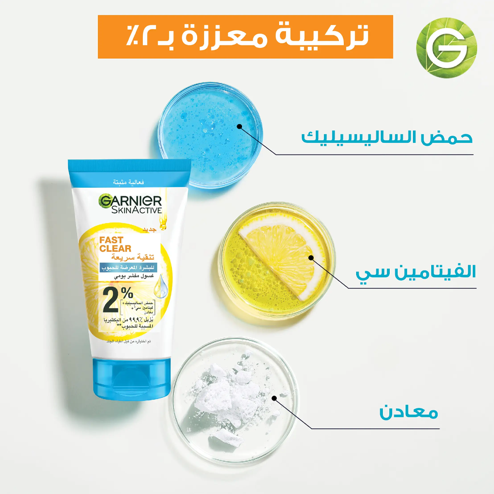 غارنييه غسول یومي سكين اكتيف تنقیة سریعة 3 في 1 بحمض الساليسيليك