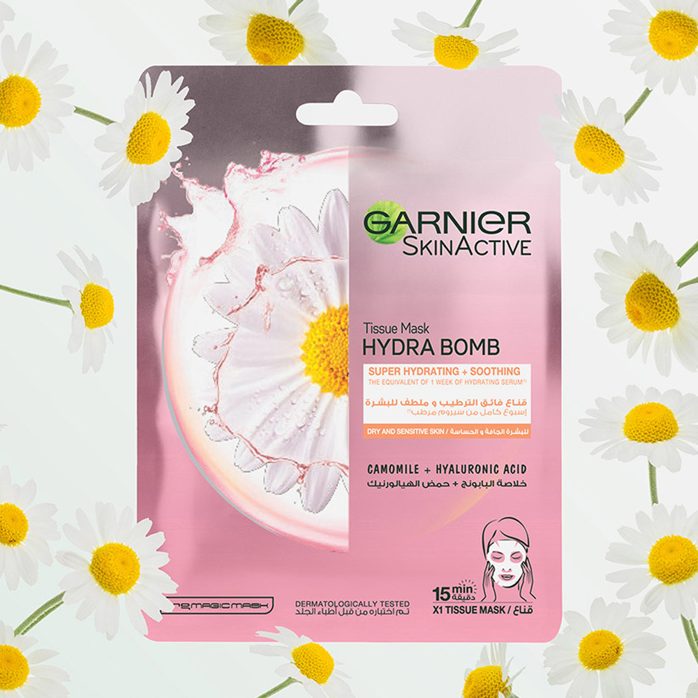 قناع هيدرا بومب الورقي مع خلاصة البابونج من غارنييه.