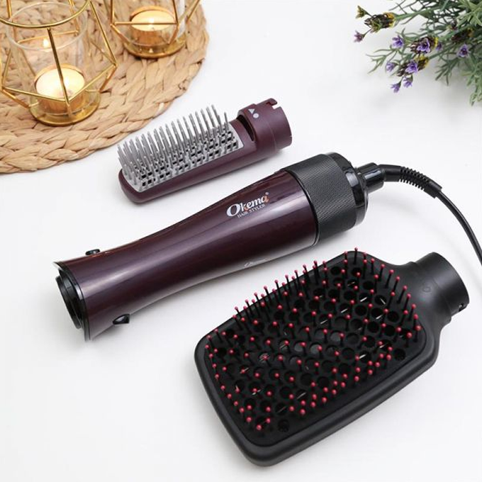 استشوار من اوكيما هو فرشاة تصفيف الشعر تعمل على تمشيط وتسريح الشعر بكل يسر وسهولة وهو منتج مثالي متكامل للحصول على شعر متألق يزيد من جمال إطلالتك. يحتوي مصفف الشعر على محرك قوي وإعدادات متعددة للحرارة والسرعة ، مما يسمح لك بتخصيص تجربة التصفيف الخاصة بك. يتميز بتصميم انيق كما انه يحتوي على فرشتين تتيح لكِ الابداع في تصفيف شعرك.تأتي بفرشتين فرشاة عريضة لتناسب الشعر الكثيف وفرشاة تناسب الشعر العادي والخفيف.