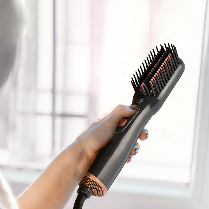 يعمل على تجفيف الشعر من الماء وتصفيفه في آن واحد حيث يتميز بفرشاة تنعيم وتجفيف وفرد وتشكيل الشعر وتلميعه في منتج واحد.