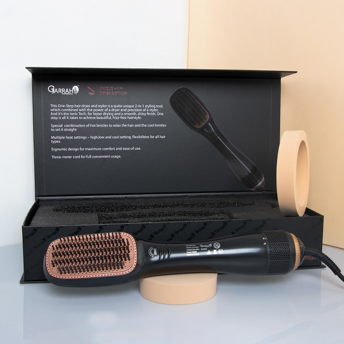 يعمل على تجفيف الشعر من الماء وتصفيفه في آن واحد حيث يتميز بفرشاة تنعيم وتجفيف وفرد وتشكيل الشعر وتلميعه في منتج واحد.