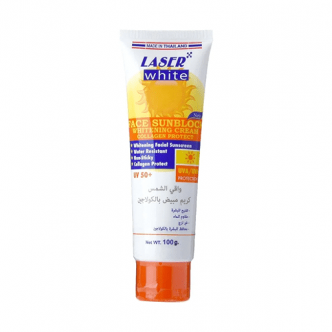 كريم واقي الشمس ومبيض بالكولاجين بعامل حماية 50+ من ليزر وايت – 100جم