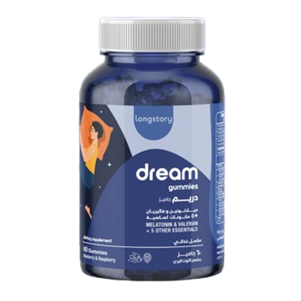 استمتع بنوم هادئ مع لونغستوري دريم غومي، مكمل طبيعي لدعم النوم في شكل غومي لذيذ بنكهة التوت.