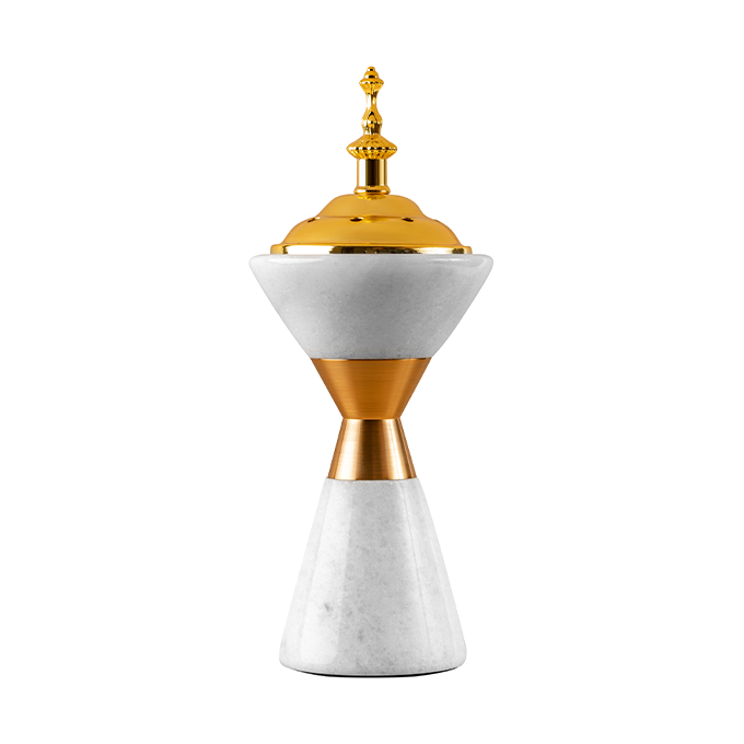 مبخرة رخام بمقبض ذهبي من نايس ون – ابيض- صغير- H-614