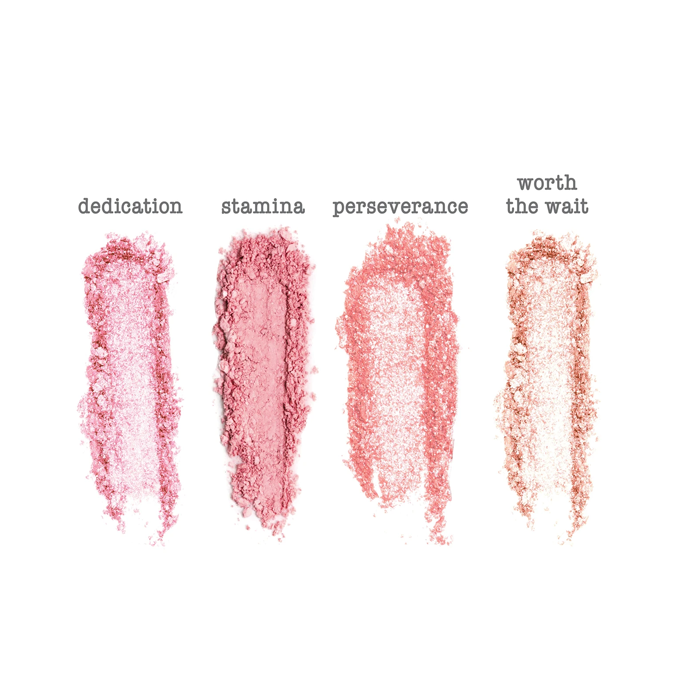 تتكون من اربع درجات وردية و مشمشية رائعة (ديدكشن – ستمينا – بيرسيفيرنس – ورث تو ويت) مناسبة كأحمر خدود أو ظل للعين.