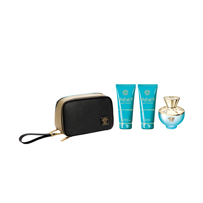 مجموعة عطر بور فيم دايلان تركواز مع حقيبة من فرزاتشي للنساء – او دو تواليت – 4 قطع