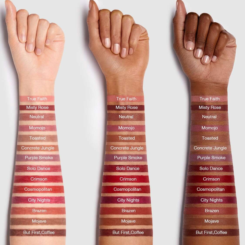 زيت نواة النخيل المهدرج، الشمع الجريزوفولفين، شمع العسل، البارافين، ثنائي الميثيكون، C12-20 الأيزوبارافين، زيت الزيتون المهدرج، بولي إيزوبوتين المهدرج، بوتيروسبيرموم باركي (زبدة الشيا)، السيليكا، معدن سيليكات الألومنيوم المغنيسيوم آل أويل، خلات توكوفيريل، بروبيلبارابين؛ قد تحتوي على: CI 15850، CI 77891، CI 77491، CI 77499، CI 77492، تريثوكسي كابريليلسيلان.