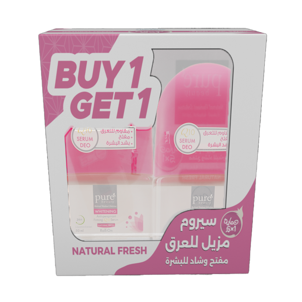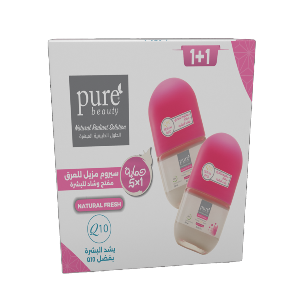 مزيل عرق رول ناتشورال فريش لتفتيح البشرة وشدها بسيروم Q10 من بيور بيوتي – حبتين