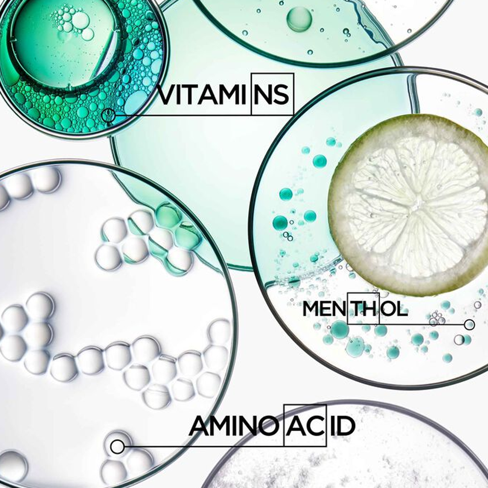 أكوا/ماء، كحول دينات، بوليسوربات 21، PEG-40 زيت الخروع المهدرج، كارنوزين، جليكاين زيت الصويا/زيت فول الصويا، توكوفيرول، رامنوز، جليسرين، فينوكسي إيثانول، مستخلص بذور المورينغا بتريجوسبرما، فوسفات ثنائي الصوديوم، حمض الستريك، عطر/عطر C185417/.