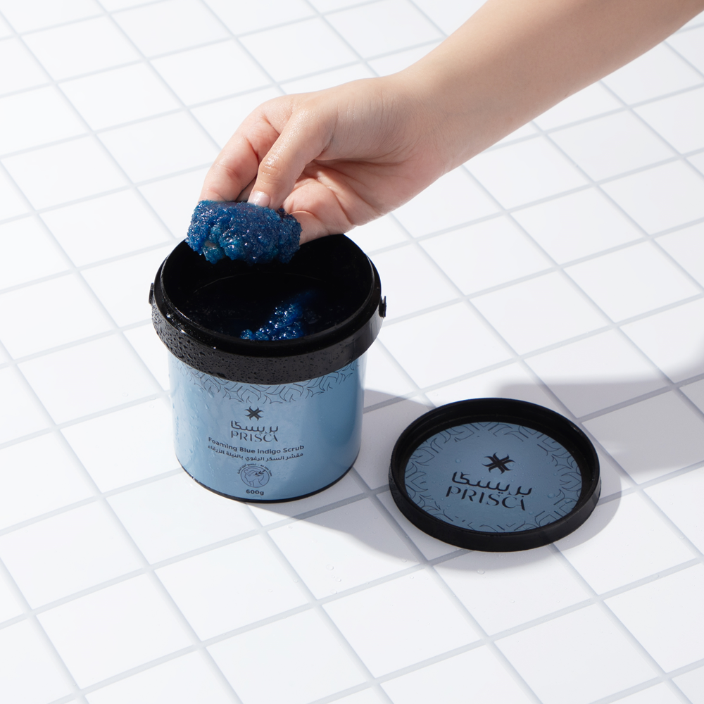 مقشر السكر بالنيلة الزرقاء لتفتيح البشرة والتخلص من الأوساخ والشوائب.يقشر بلطف لإزالة الشوائب وتنقية مسام البشرة حتى تتنفس البشرة بحرية.يوحد لون البشرة للحصول على مظهر غاية في الجمال.مزيج قوي من المكونات الطبيعية التي تُحارب الرؤوس السوداء والتصبغات. يحتوي على مسحوق النيلة الزرقاء المغربية المعروفة بتفتيح البشرة وتقشيرها وتوحيد لونها.يتخلص من خلايا الجلد الميتة والرؤوس السوداء والبيضاء.يملك خصائص مهدئة ومضادة للالتهابات بفضل النيلة المغربية.