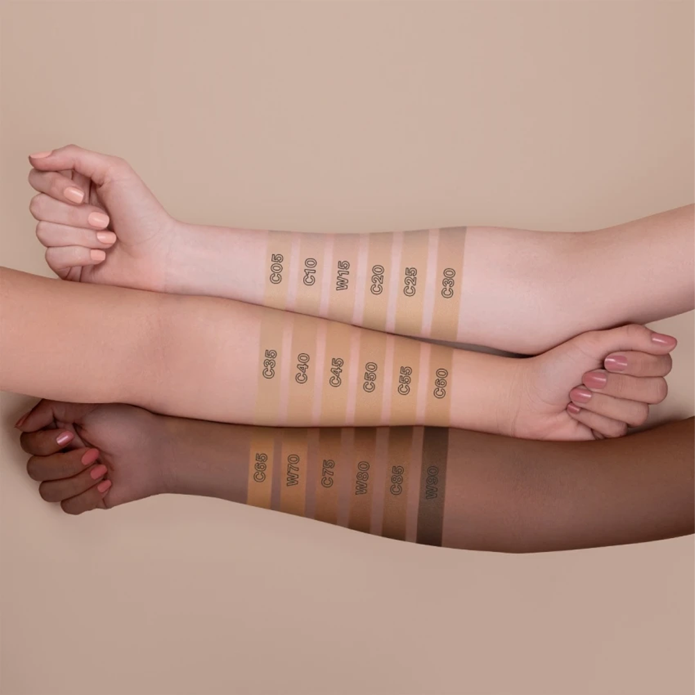 كريم أساس سائل ذو لمسة نهائية مضيئة وقوام خفيف للغاية.يتميز بتغطية متوسطة إلى عالية ويمكنك وضع عدة طبقات للحصول على التغطية المطلوبة.تركيبته تحتوي على نسبة عالية من الماء لذلك فهو مناسب بشكل خاص للبشرة العادية والجافة.يحتوي على عامل وقاية من الشمس بنسبة 15 لذلك يعتبر مقاوم للشيخوخة المبكرة وبقع الشمس.