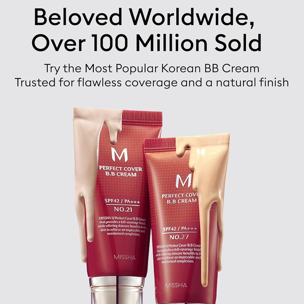 احصلي على بشرة خالية من العيوب مع ميشا إم بيرفكت كوفر بي بي كريم، التركيبة الكورية الشهيرة التي تجمع بين المكياج والعناية بالبشرة في منتج واحد.
