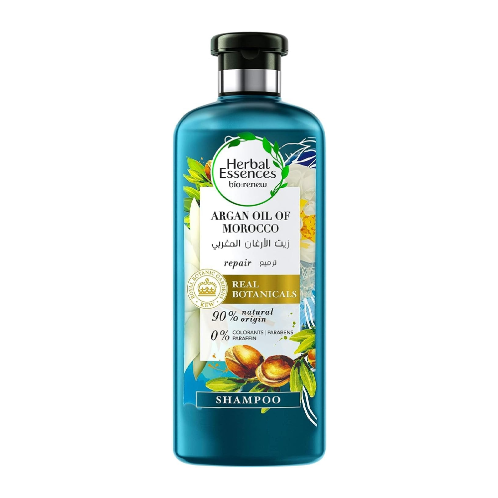 استعيدي قوة شعرك مع شامبو هيربل إيسنسز بزيت الأرغان المغربي.