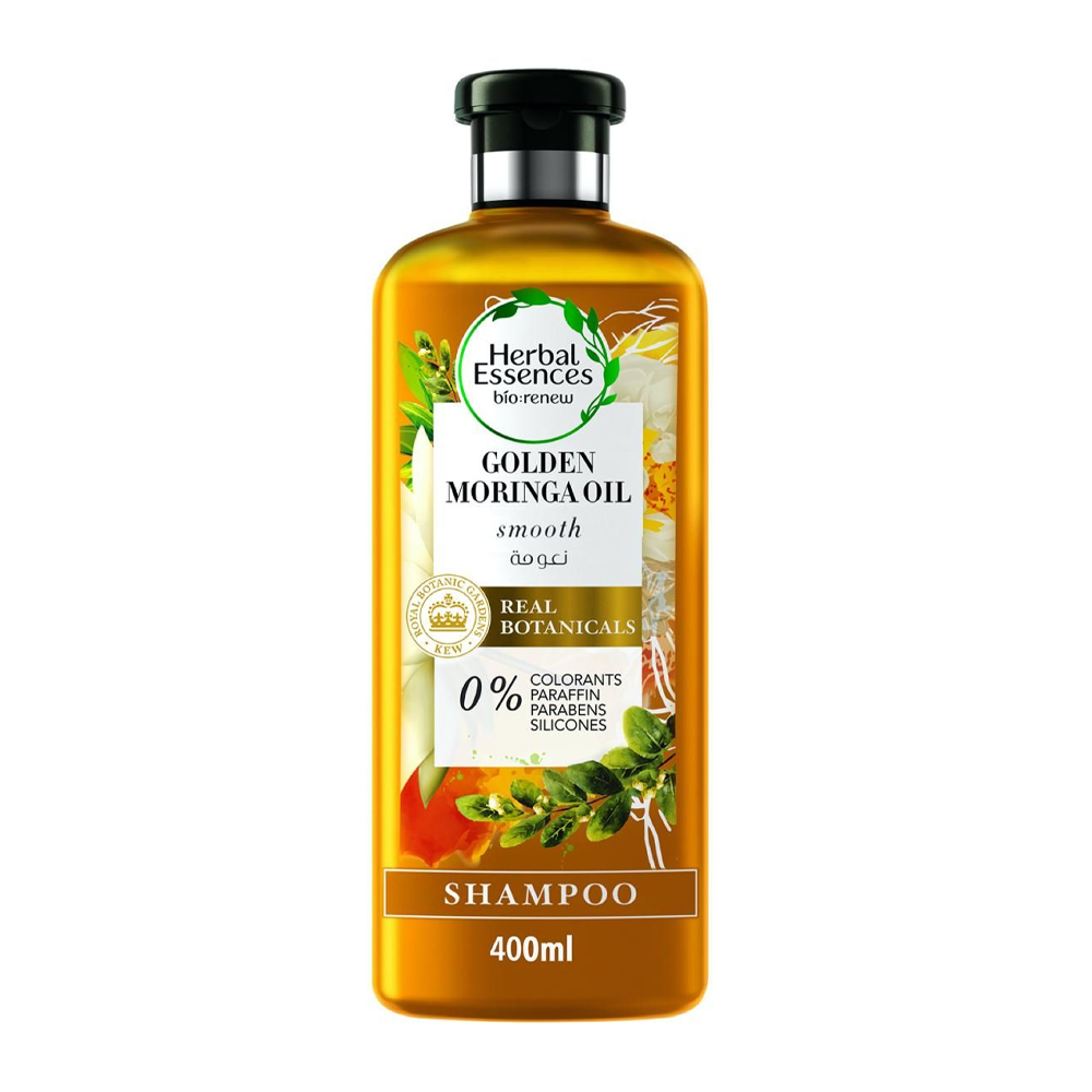 احصلي على شعر ناعم وحريري مع شامبو هيربل إيسنسز بزيت المورينغا الذهبي.