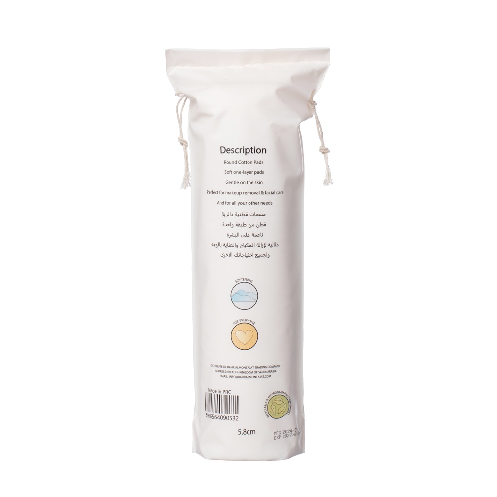 مسحات قطنية دائرية بملمس ناعم على البشرة من ونس. مثالية لإزالة المكياج والعناية بالوجه ولجميع احتياجاتك الأخرى.خامة قطنية نقية 100% ناعمة وآمنة لتنظيف الوجه من بقايا وآثار مستحضرات التجميل.مصممة بجهتين، عادية ومخططة، لتناسب جميع احتياجات العناية بالبشرة.الجهة العادية من القطن مثالية للاستخدام عند إزالة المكياج والمناكير.والجهة المخططة تتناسب مع استخدام التونر لتعمل على تنقية البشرة وتنظيفها بعمق.